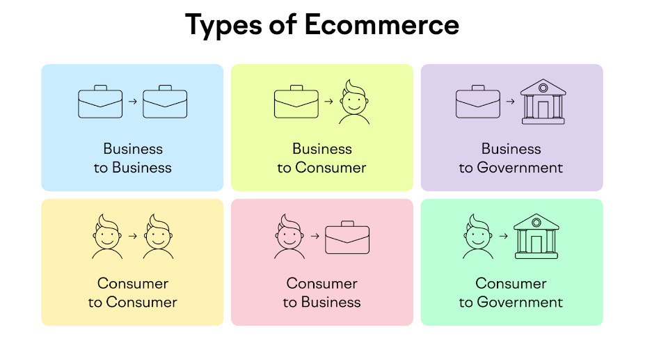 Existen varios tipos de eCommerce, que se definen según quién vende y quién compra. A continuación, te explicamos los diferentes modelos de negocio eCommerce: